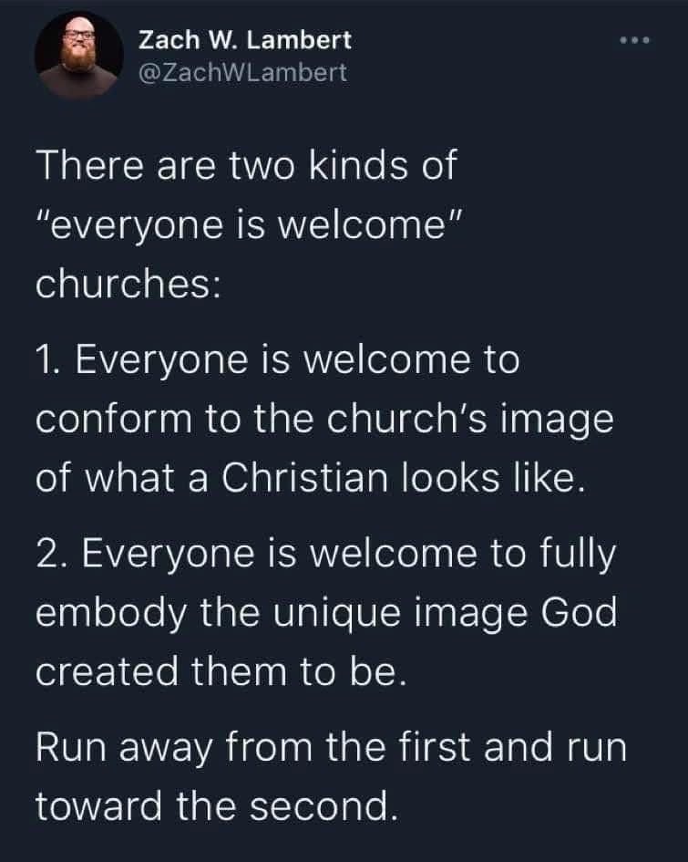 I recently saw this image circling on social media, describing two types of “welcoming” churches.